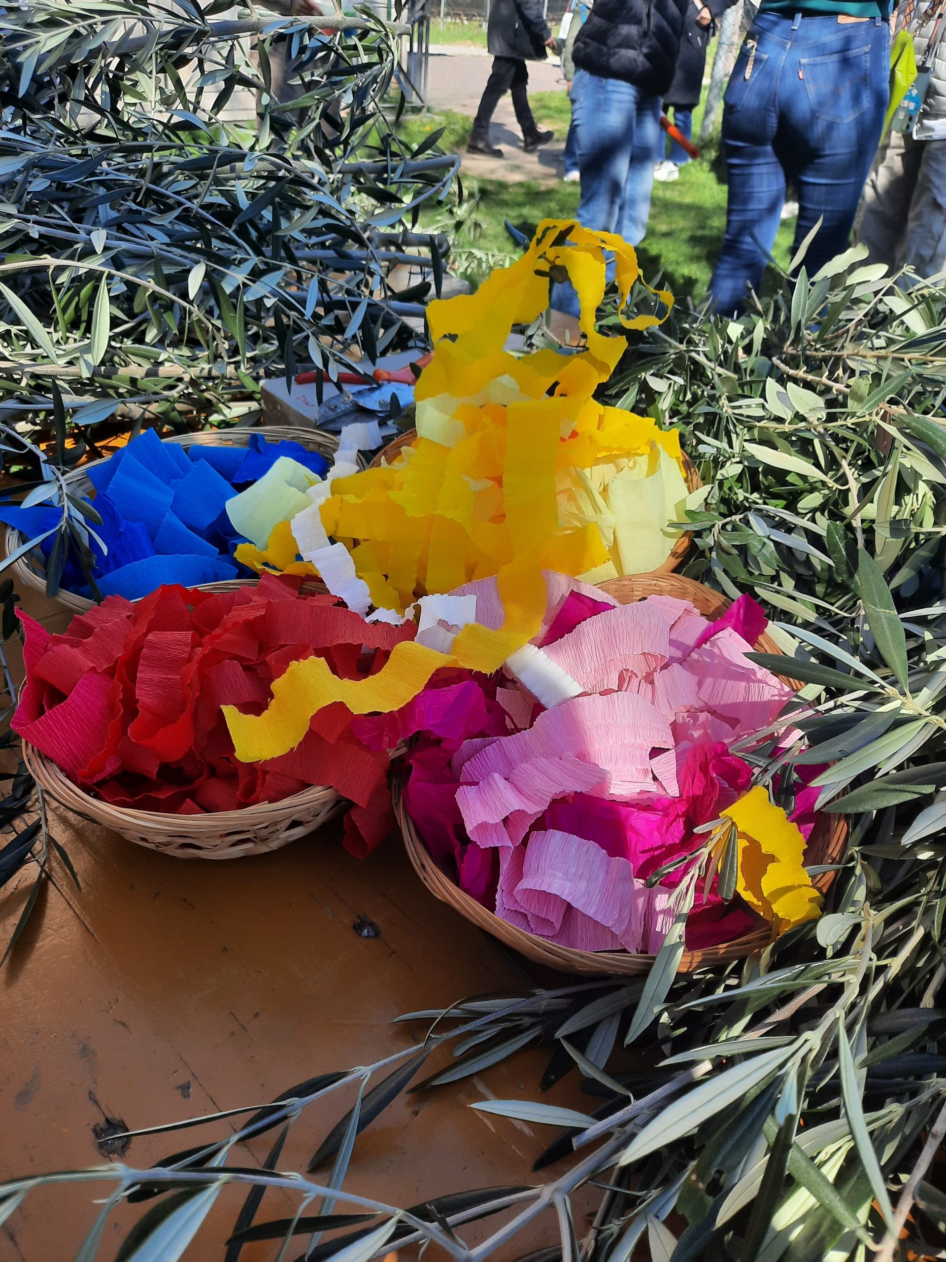 Die Vorbereitung dieses Brauchtums erfordert einen erheblichen Aufwand und sorgfältige Planung. So müssen rechtzeitig geeignete Olivenzweige besorgt werden. Zudem werden sowohl kürzere als auch längere Stangen benötigt, die als Träger der Palmbesen dienen. Ein weiterer wichtiger Bestandteil ist die liebevolle Gestaltung: Zahlreiche bunte Bänder und Schleifen werden vorbereitet und kunstvoll zu dekorativen Maschen gebunden, um die Palmbesen festlich zu schmücken.